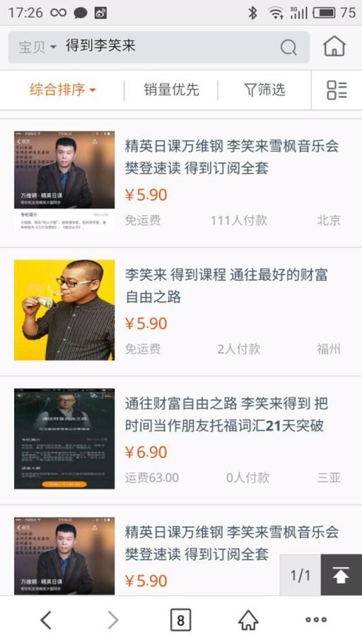 偶然有一天翻看李笑来的微信公号上在讨论盗版时也发现了某宝上倒卖知识这片新大陆的存在,各类热门网络付费知识从一块到二十几块不等。